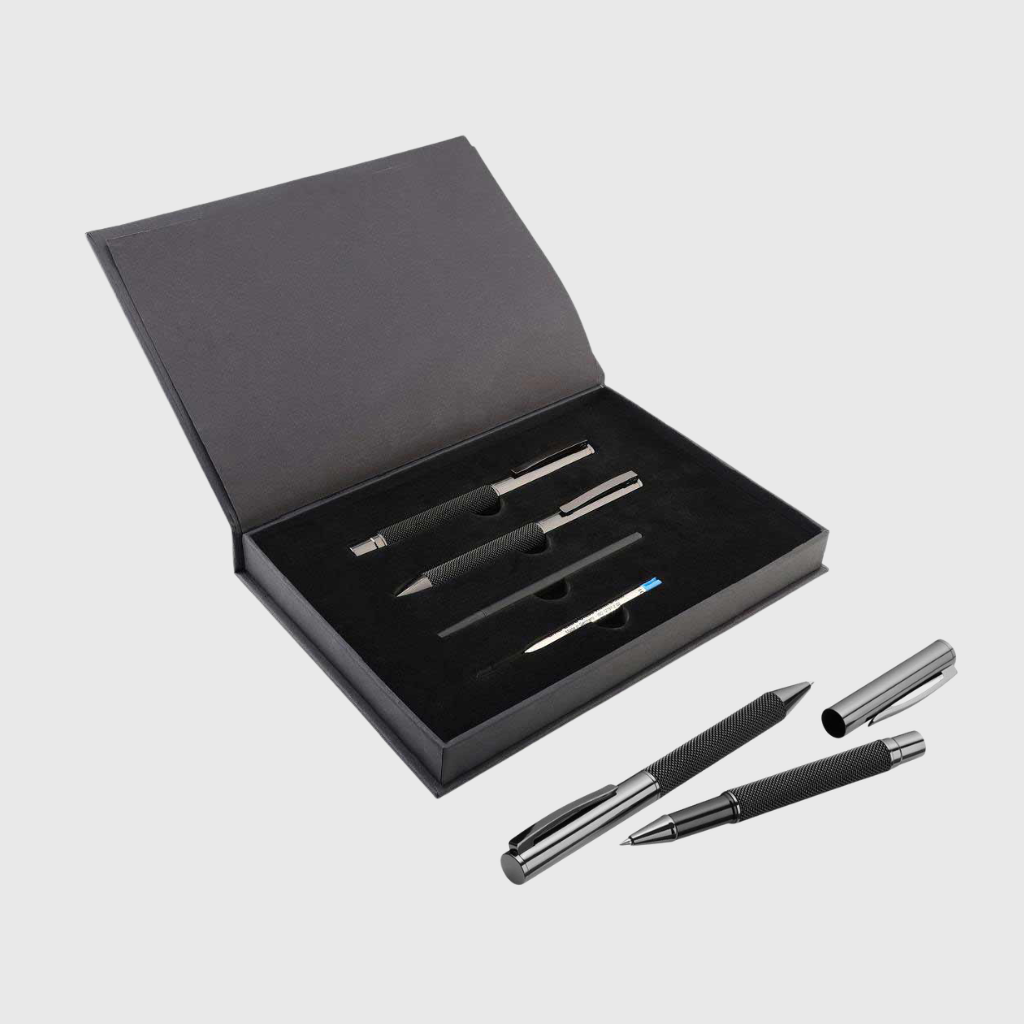 - Customized pens: These come in a range of options from basic pens to classic pens. To make an impression, you can select sophisticated and stylish metal pens, which can be engraved or printed with your logo. Pen sets such as Gift Box Set of Copper Roller & Ball Pens, or Gift Box Set of 2 Premium Mesh Metal Pens are also a very popular corporate gift idea in the UAE and elsewhere.