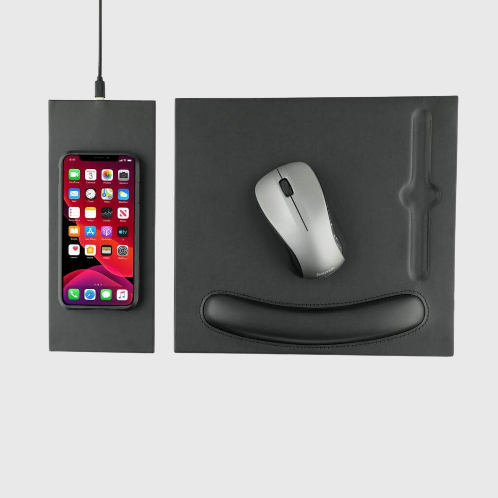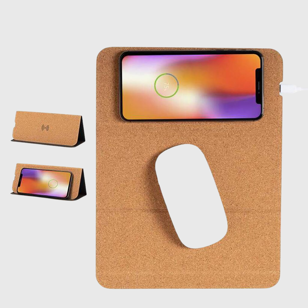 - Mouse Pads: Easy to brand with your company logo and tagline, you can choose the very functional Wireless Charger with PU Mouse Pad, or go for Eco-friendly Foldable Cork Mousepad with 15W Wireless charger, both are premium quality products.