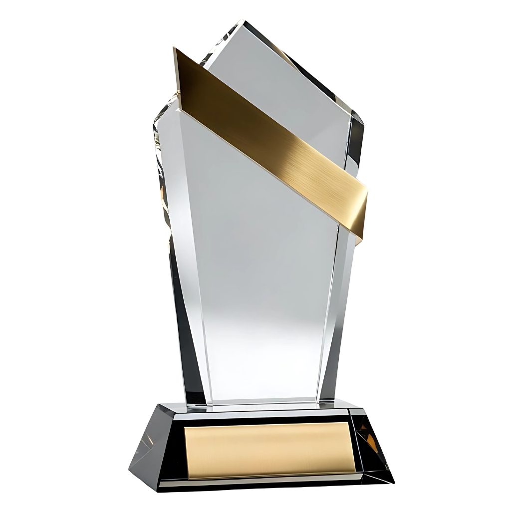 Crystal-Metal trophy is a modern design made from fine crystal and high-quality metal that goes perfectly with each other.This sophisticated fusion of metal and premium glass is perfect for recognizing exceptional achievements. Its best for featuring any achievements and goals.