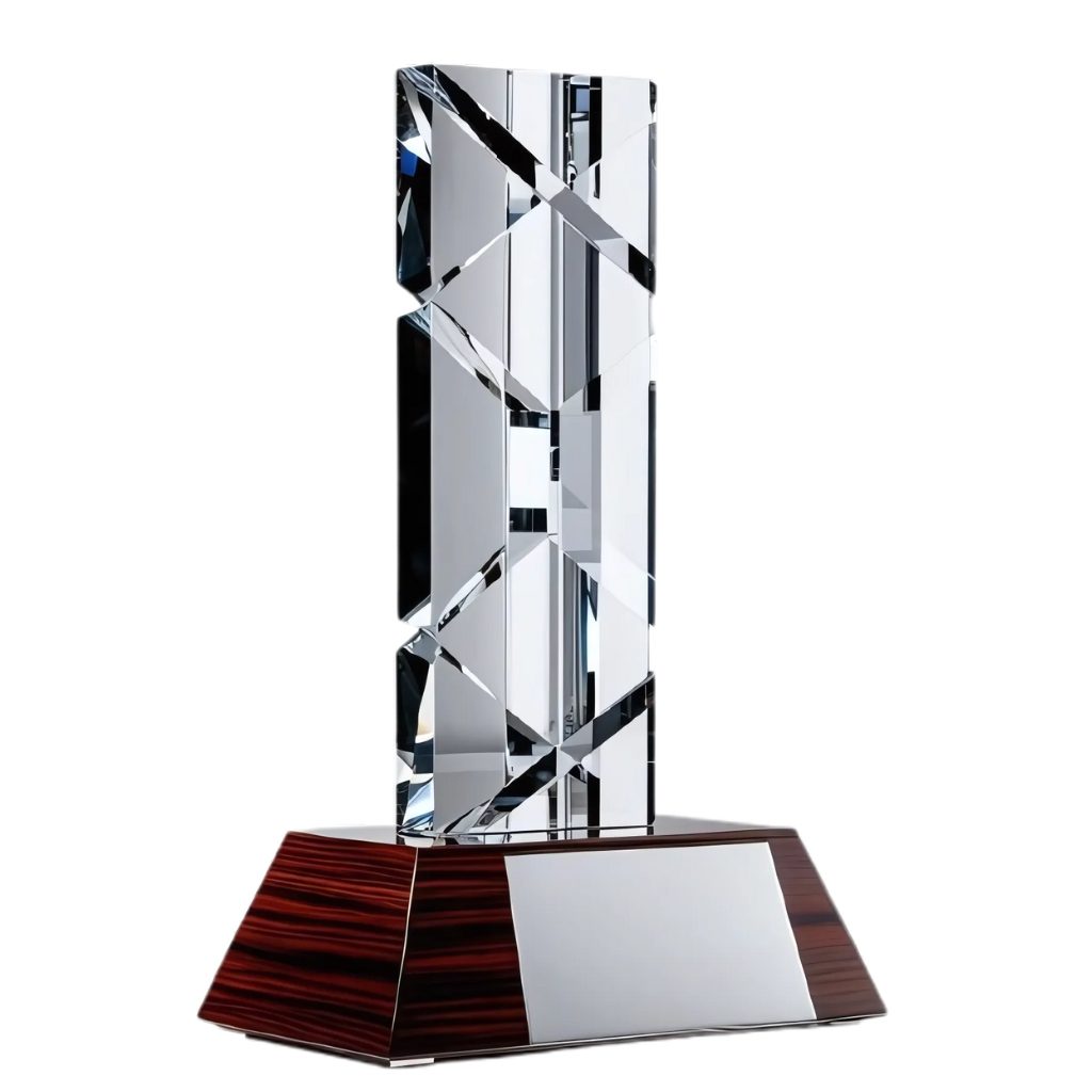 Crystal Pillar with wooden platform makes a outstanding and sophisticated piece. This is made of premium glass hence trophy’s every faceted edge and sharpness reflects a brilliant shine. This is the best trophy to embark any success or milestone. It can easily be customized with quality engraving. Reach us for bulk orders!